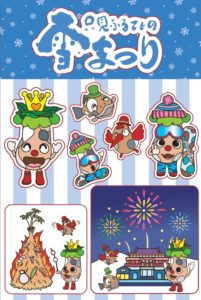 只見町公式キャラクターたちを1枚のシートにまとめた雪まつり限定のステッカーです。